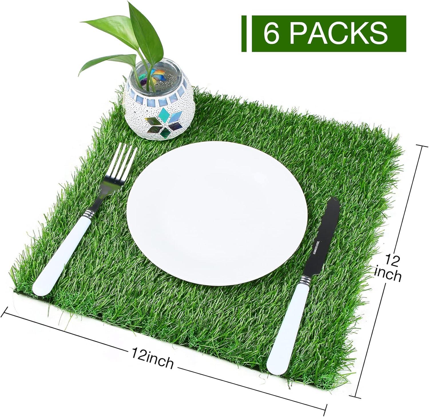 XLX TURF Artificial Grass Placemats Table Centerpiece Greene Golf Theme Spring Summer Party Decor, Match Green Garden Grass Table Runner, DIY Craft, 12 x 18 Inch, 6 Pack(12″x12″ Set of 6)