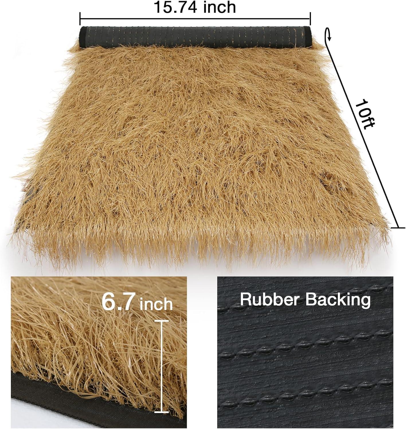 Waterproof Synthetic Straw Roll: Unlike natural straw roof or thatch patche, our artificial straw grass is PE material with rubber bottom that solve easy to rot, damp and gnaw, easy to install