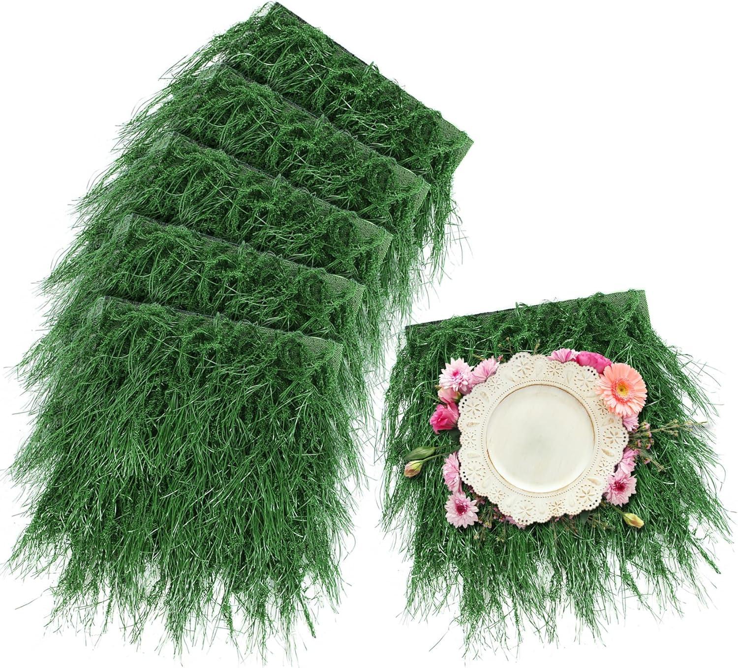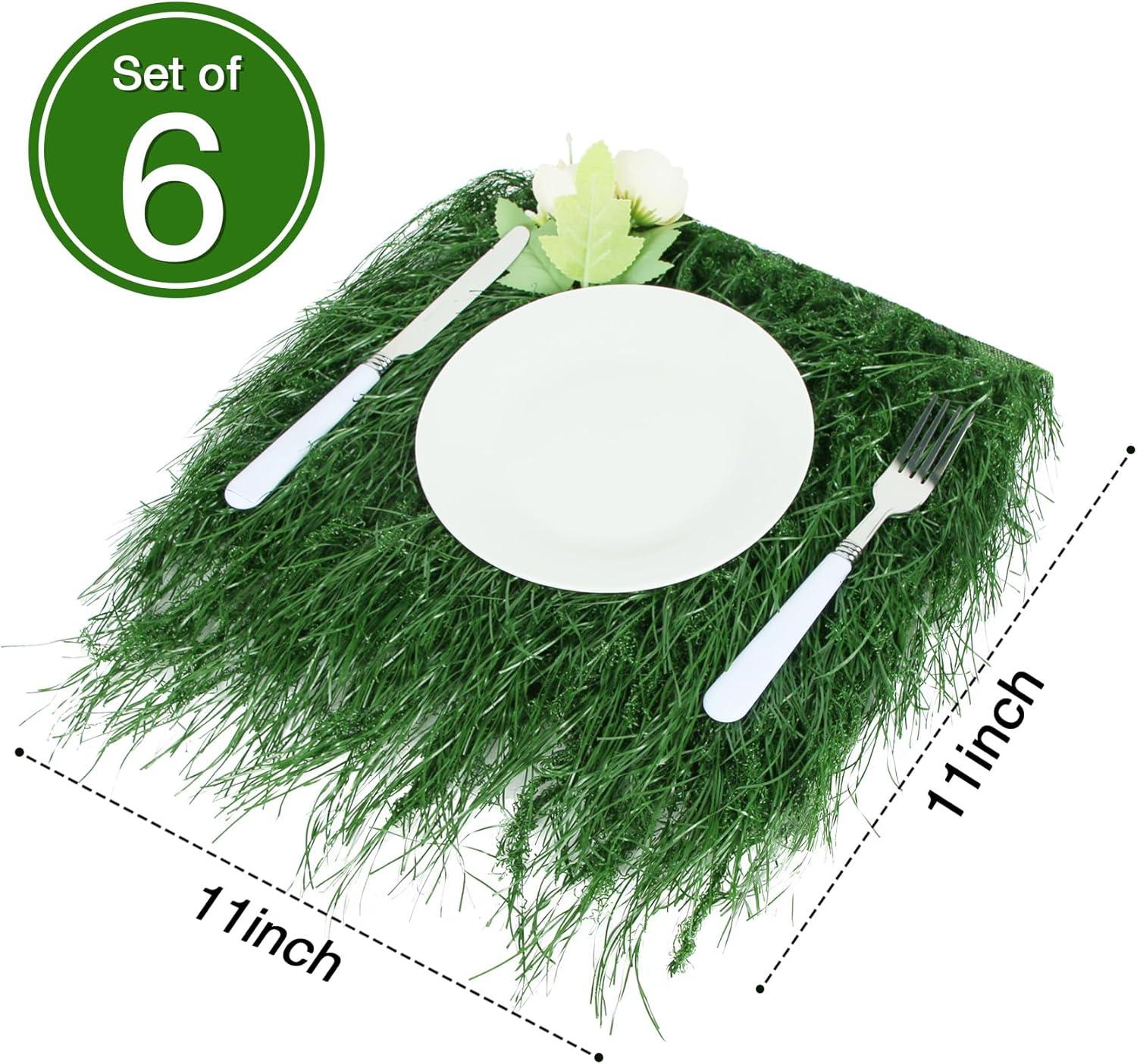 XLX TURF Faux Thatch Grass Placemats 4 Pack, 11″x11″ Green Golf Themed Party Table Centerpiece Decor , Wild One Birthday, Indoor Outdoor Use(Green Thatch Grass)
