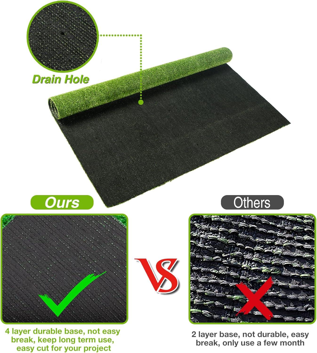 Low Pile Artificial Turf: The outdoor turf rugs with 0.31 inch pile height, lightweight, help install and remove easily. Looks and feels like real grass, providing durability and functionality all seasons