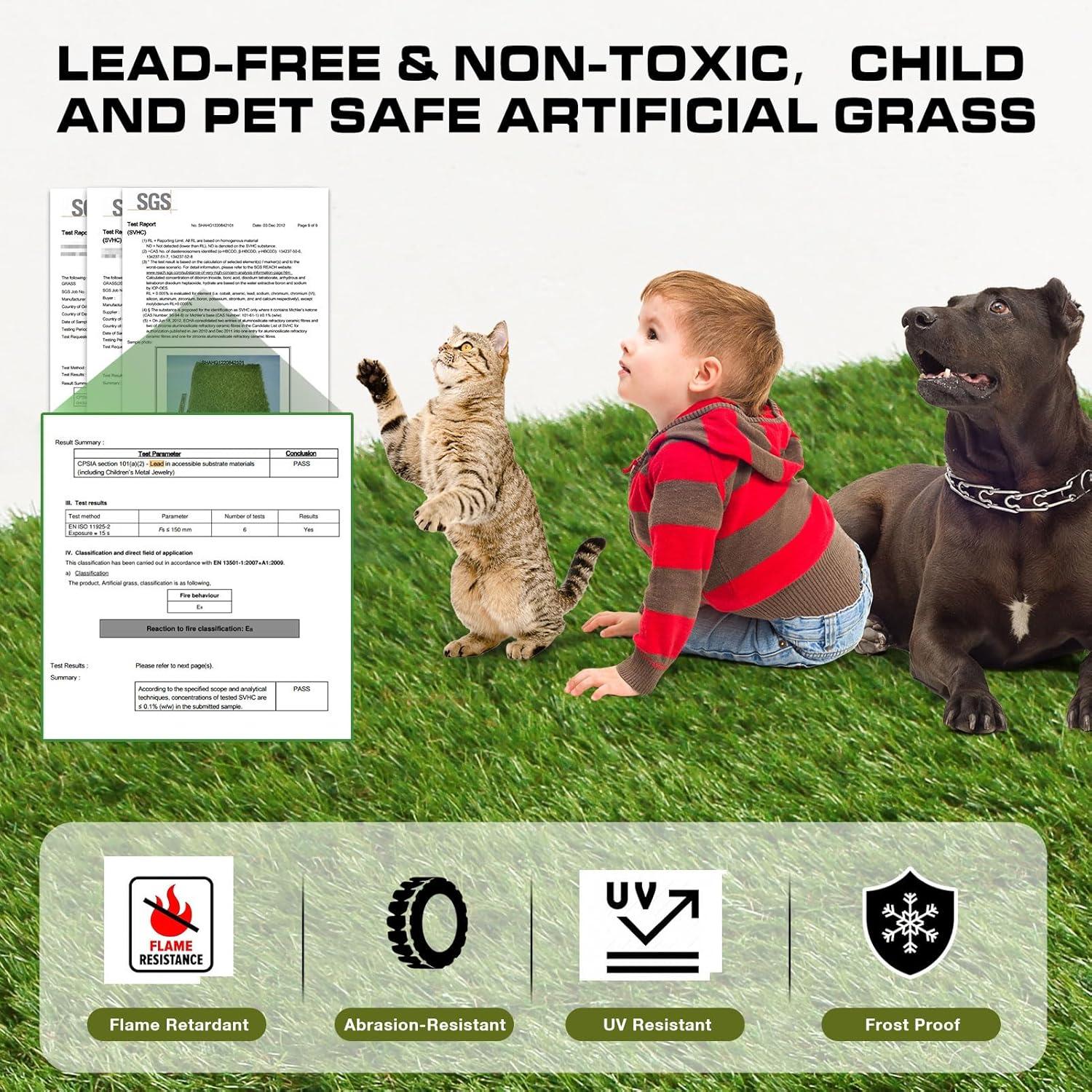 High Quality Artificial Turf Tiles: XLX TURF fake grass tiles only use 100% brand new PE and PP materials, lead free, safe and friendly for children or pets to play on. And our artifical grass squares floor tile is durable, waterproof, weatherproof, wear-resistant, non-slip, elastic, fireproof, anti-aging, anti fade