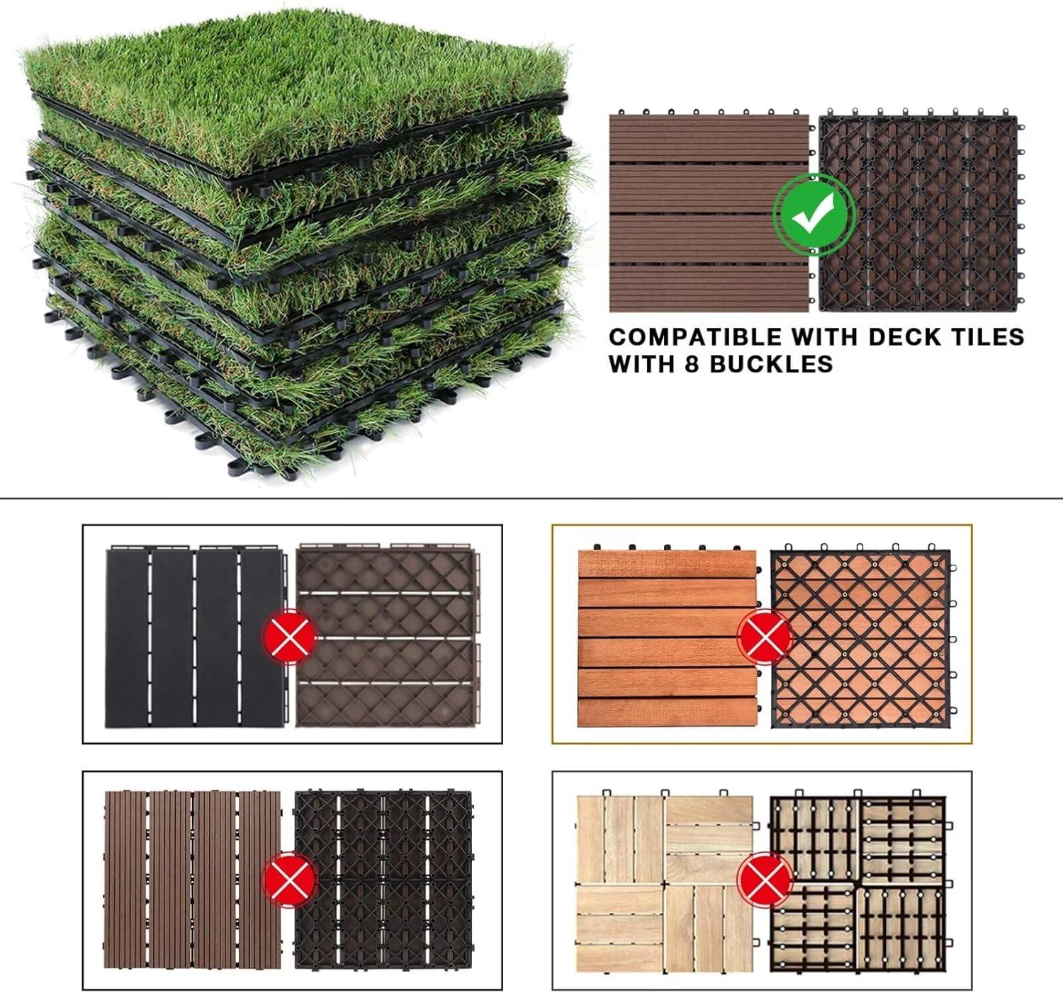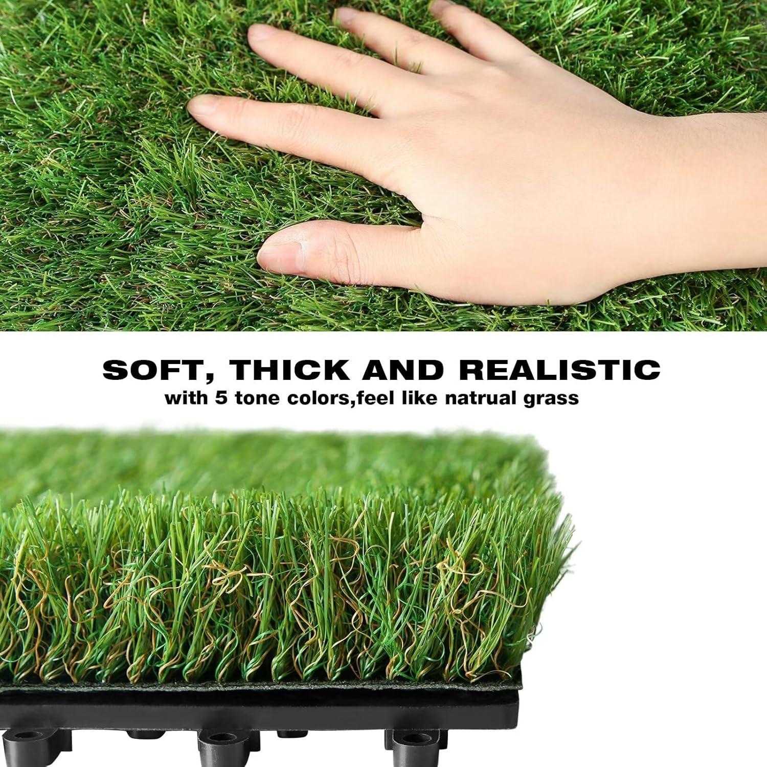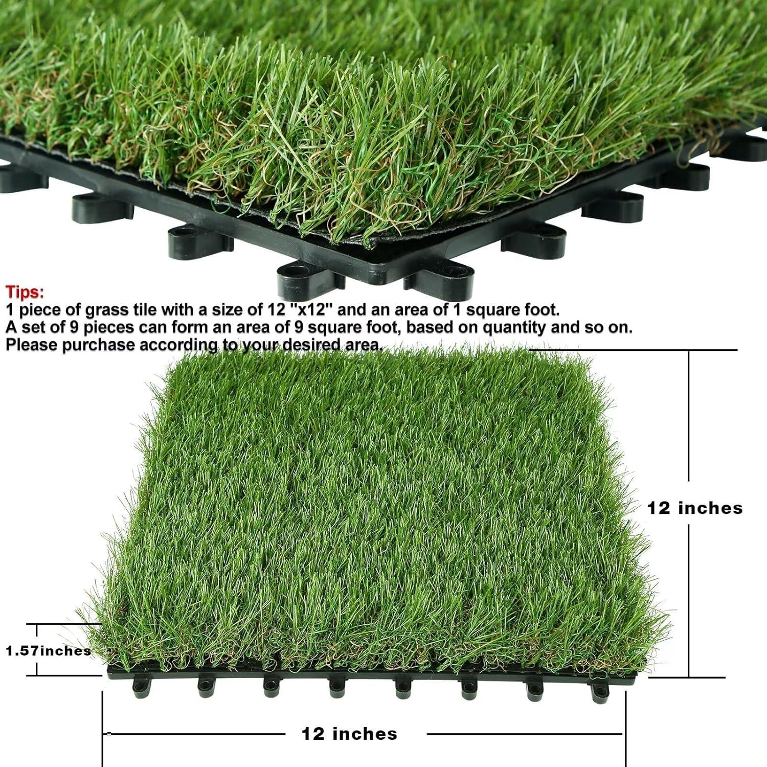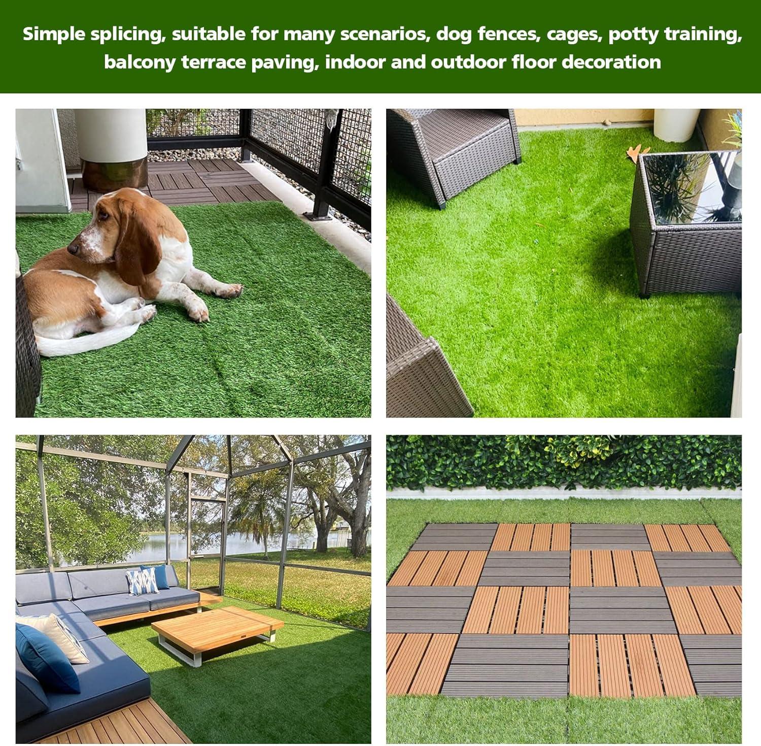 Suitable for Various Occasions: Interlocking turf grass tiles for patio, balcony apartment, back/front yard, wooden deck, rooftop, pools, walkway, pet mat, dog potty training grass, placemat, kids playground, picnic mat. Provide year-round green vitality