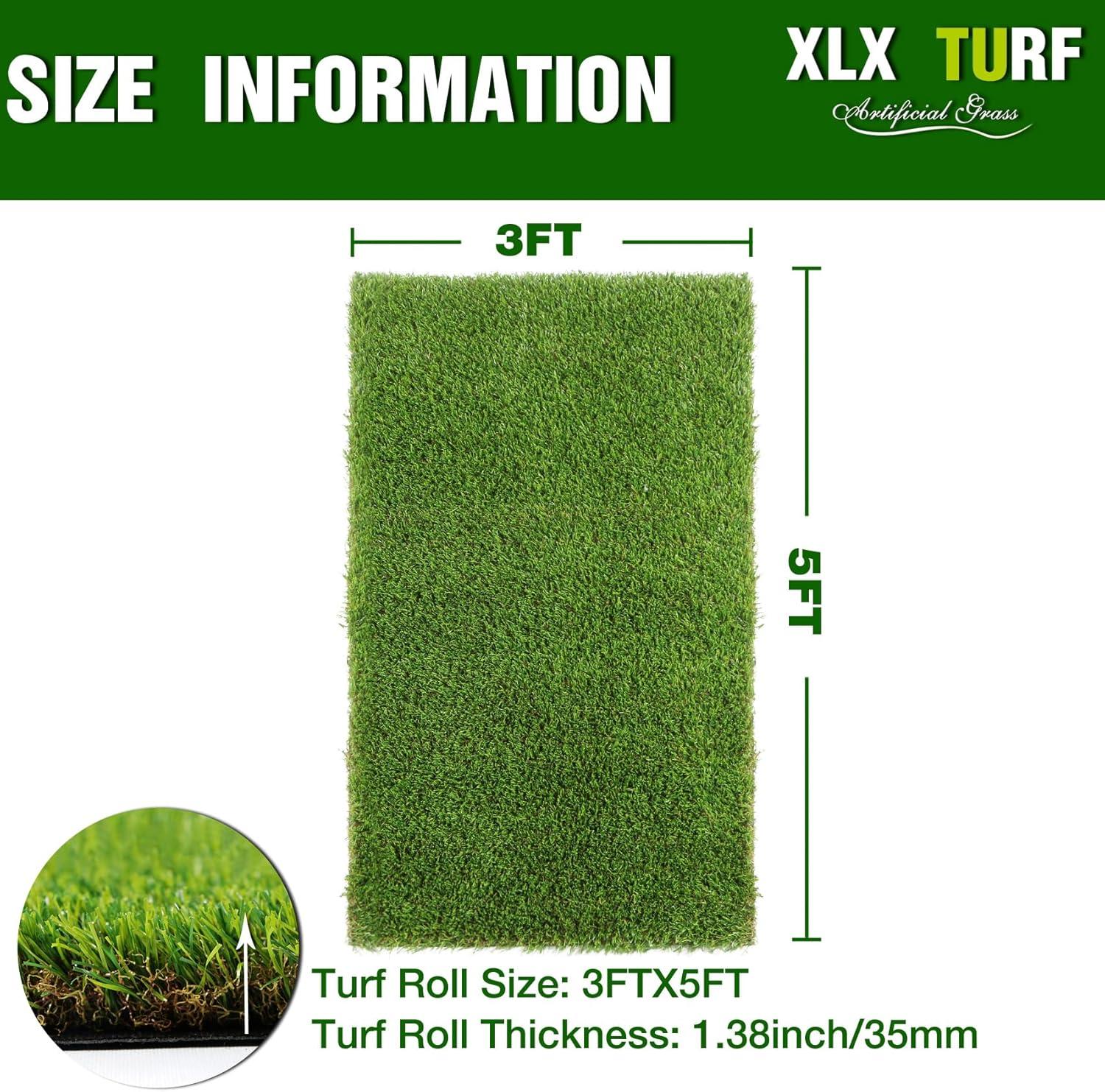 XLX TURF Realistic Artificial Grass Rug Indoor Outdoor Patio – 3ft x 5ft, Thick Fake Grass for Dogs Pet Turf Mat Decor Garden Synthetic Lawn Landscape with Drainage Hole(3′ x 5′ (Rectangular))