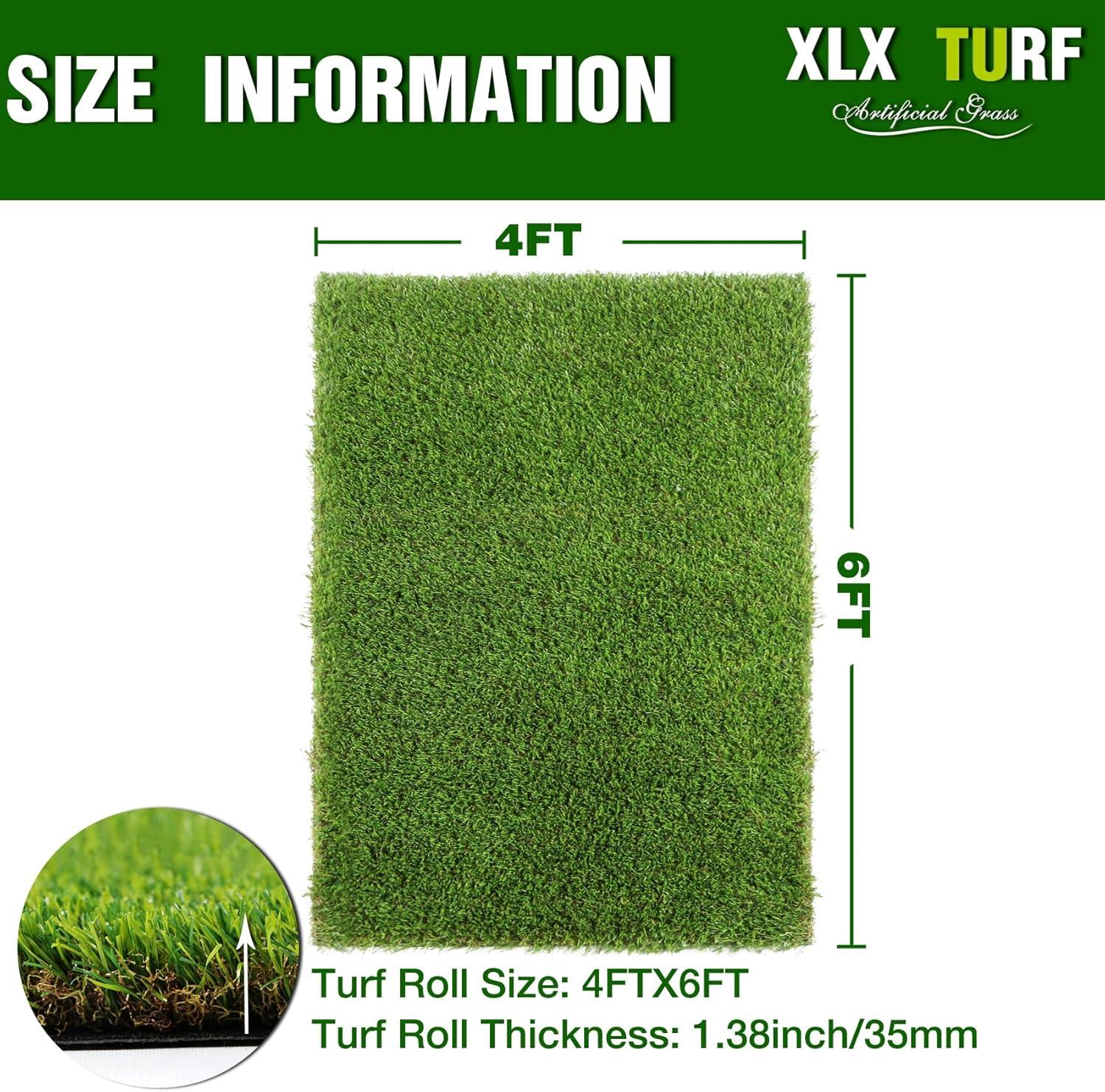XLX TURF Realistic Artificial Grass Rug Indoor Outdoor Patio – 3ft x 5ft, Thick Fake Grass for Dogs Pet Turf Mat Decor Garden Synthetic Lawn Landscape with Drainage Hole(4FT X 6FT 35mm)