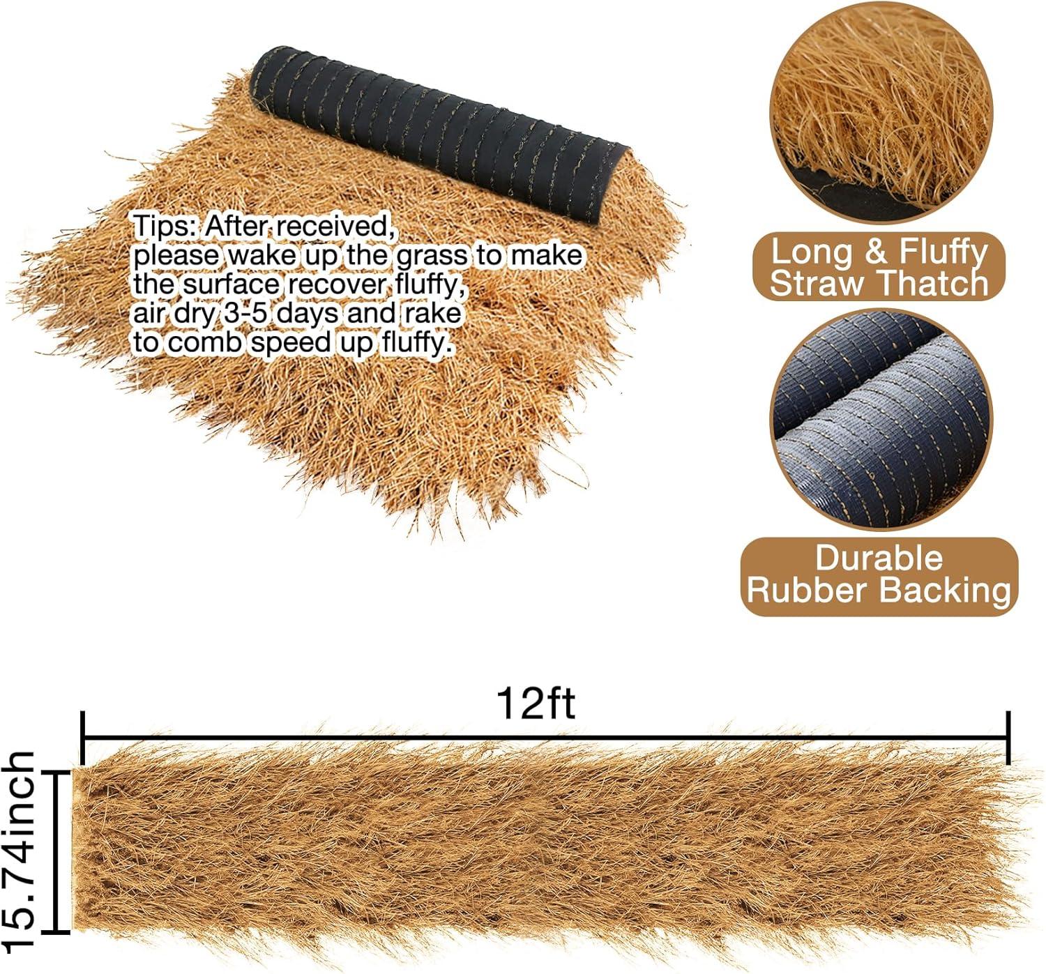 XLX TURF Synthetic Thatch Grass Roof for Tiki Bar Fireproof Mexican Grass Tropical Party Decorations, Artificial Straw Roll Garden Fence Patio, DIY Crafts, 15.74″ x 4′(15.74″ x 12′)