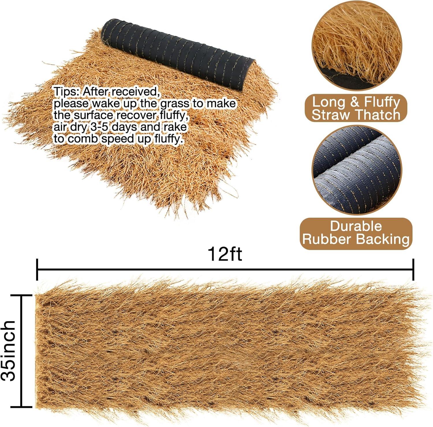 XLX TURF Synthetic Thatch Grass Roof for Tiki Bar Fireproof Mexican Grass Tropical Party Decorations, Artificial Straw Roll Garden Fence Patio, DIY Crafts, 15.74″ x 4′(35″ x 12′)